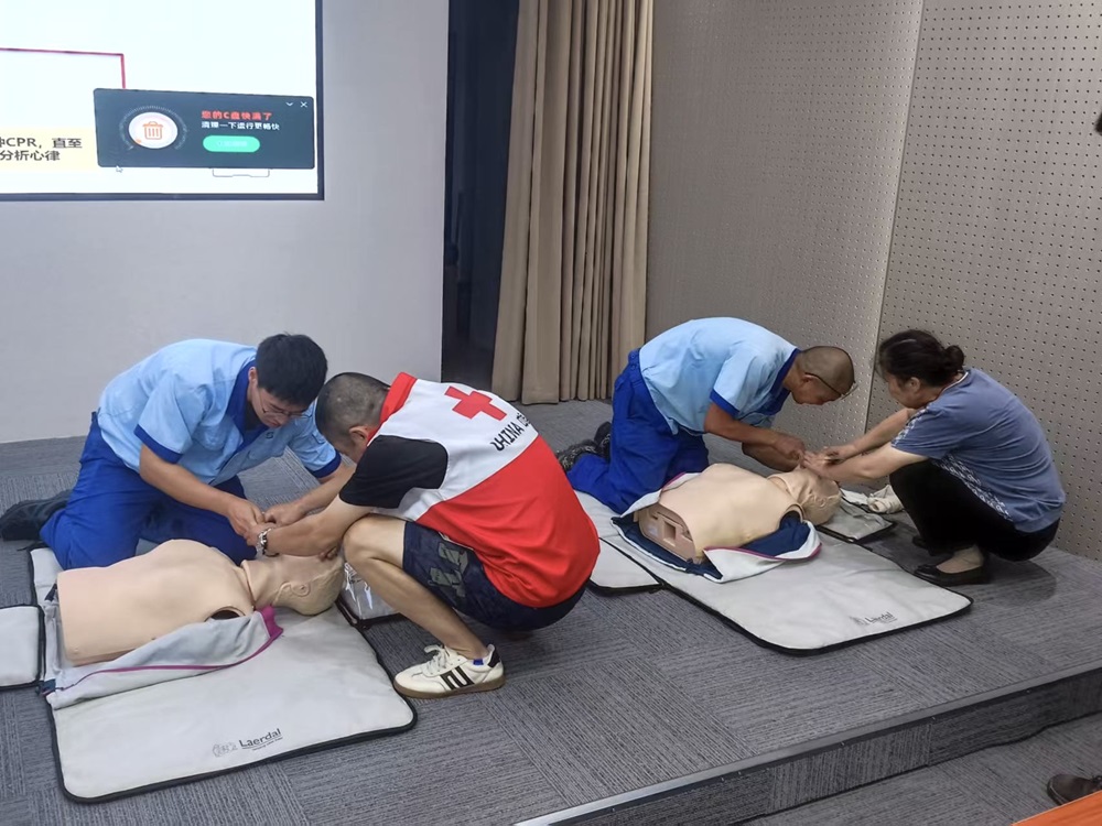 培训现场,俞飞向大家强调掌握急救技能在日常生活中的重要性,并系统传授心肺复苏(CPR)基本技能,详细讲解心脏除颤仪(AED)正确使用方法,及止血、骨折固定等的基本操作要领和注意事项。互动阶段,他还耐心指导大家亲身体验应急救护技能的实际操作。
