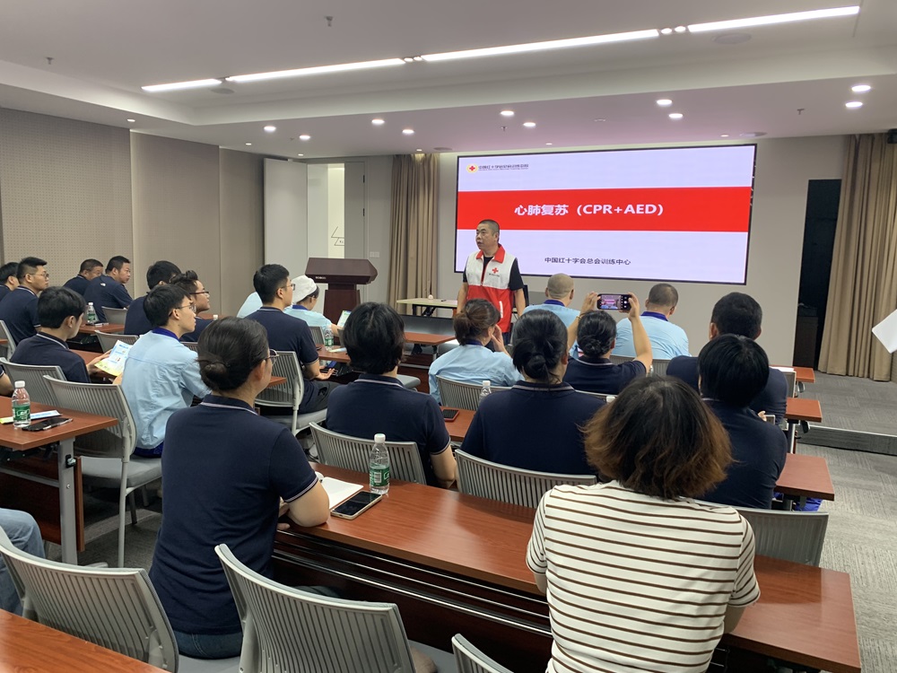 9月25日上午,集团公司组织开展红十字应急救护专题培训,特邀南通市红十字会培训老师、唐闸镇街道卫生服务中心工作人员俞飞,来集团为大家讲解、传授相关知识和技能。来自各子公司、车间、部门的70多名安全管理员、救援人员参加培训。
